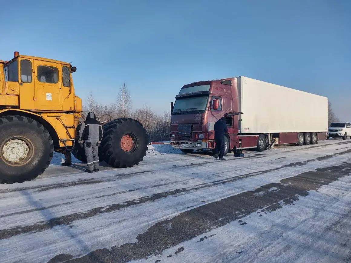 В Хабарском районе Алтайского края большегруз сломался прямо на трассе в разгар сильных морозов. Водителю помогли дорожные рабочие, которые оперативно пришли на выручку, рассказали в региональном Министерстве транспорта.