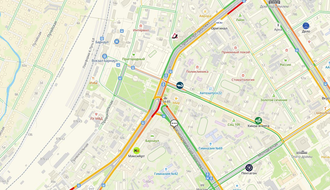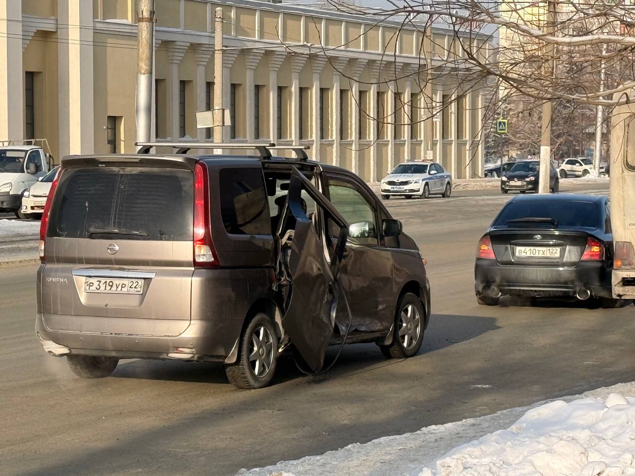 Столкнулись две иномарки. У Nissan Serena от удара вырвало дверь. Обстоятельства аварии пока неизвестны. По данным 2ГИС, на полосе в сторону площади Октября небольшой затор.