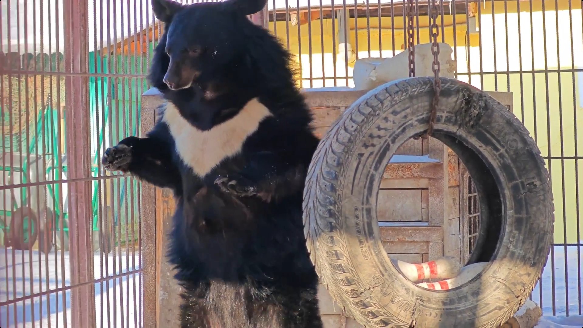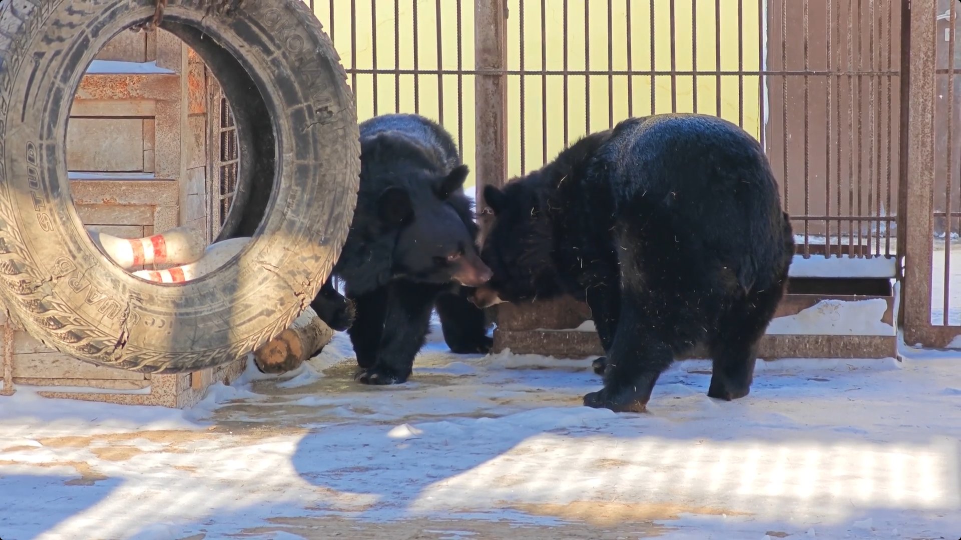 Накануне гималайские медведицы Катюша и Даша, почуяв потепление, выбрались из домиков, перекусили и вернулись в своё «сонное царство».