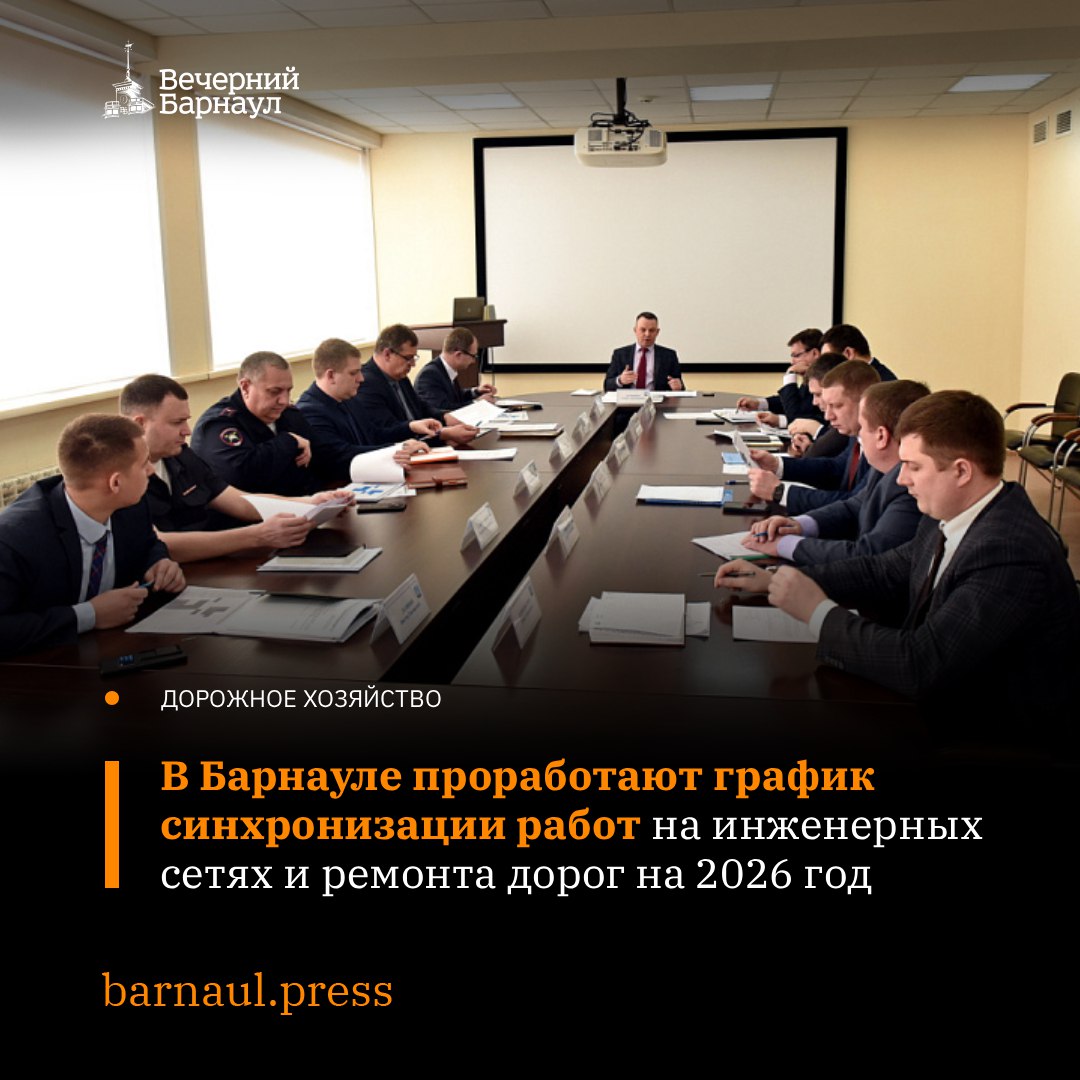В администрации Барнаула обсудили синхронизацию работ на инженерных сетях и ремонта дорог, предусмотренных на 2026 год в рамках национальных проектов.