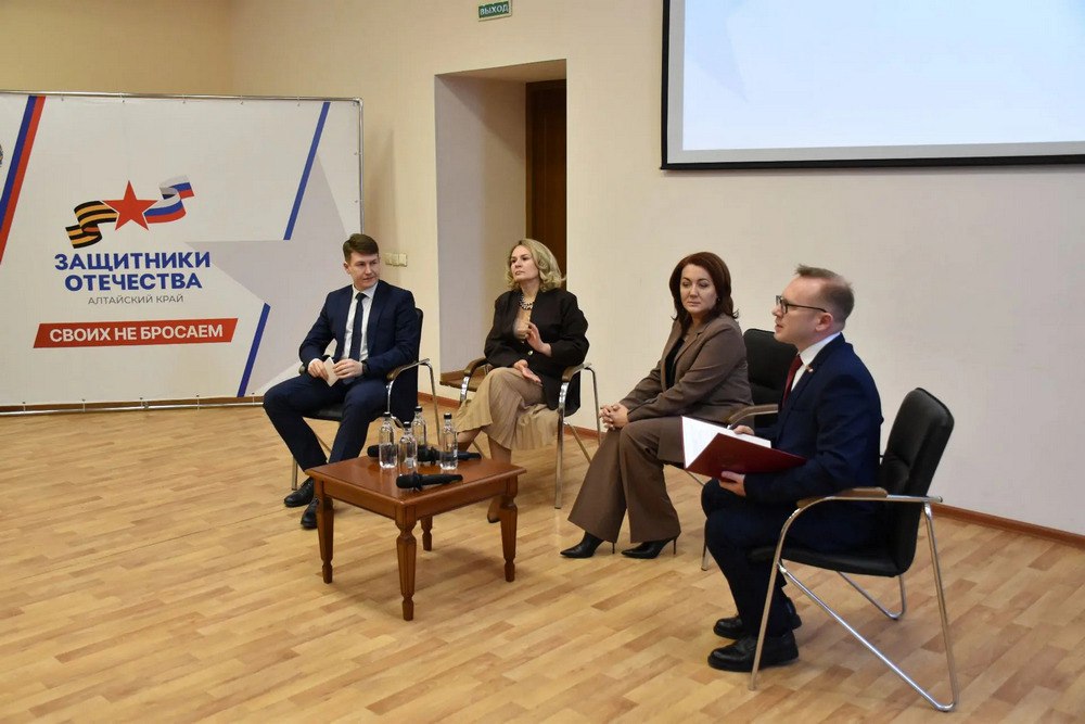 В алтайском филиале фонда «Защитники Отечества» прошел семинар-совещание для социальных координаторов, которые работают с ветеранами боевых действий и их близкими. Вместе с ними актуальные вопросы комплексной поддержки участников СВО обсудили заместитель председателя Алтайского краевого Законодательного Собрания – глава комитета по правовой политике и местному самоуправлению Денис Голобородько и председатель комитета АКЗС по социальной защите и занятости населения Ирина Солнцева, а также сенатор РФ Наталья Кувшинова и министр соцзащиты края Наталья Оськина.