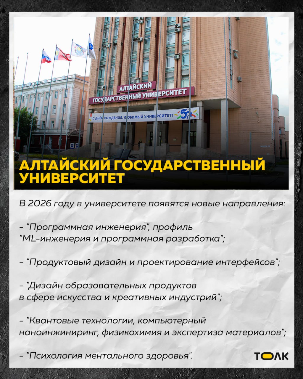 Какие новые образовательные программы появятся в 2026 году рассказали в карточках. А о наиболее популярных профессиях в алтайских вузах и сколько там бюджетных мест читайте здесь.