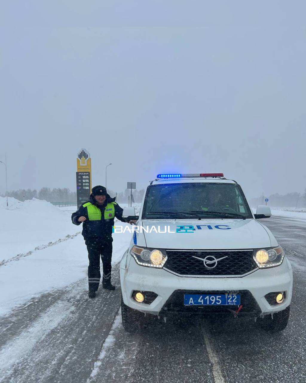 Хотим поблагодарить экипаж на данном авто и сотрудника ДПС Антона за спасение нас с заснеженной дороги. Они проехали с нами все опасные участки, сопроводили и благодаря этому мы смогли доехать до важного события в Бийске, - пишет Оксана.