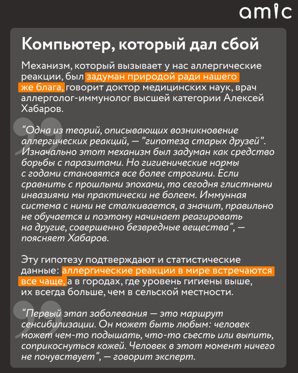 О том, из-за чего появляется аллергия, почему она возникает на самые разные компоненты и что нужно делать, чтобы от нее избавиться, — в наших карточках.