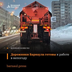 Бригады переходят на круглосуточный режим. В ближайшие сутки в Барнауле продолжит идти снег с дождем. Специалисты дорожной службы будут вести мониторинг состояния улиц и оперативно реагировать на изменения погодных условий.Для устранения последствий...