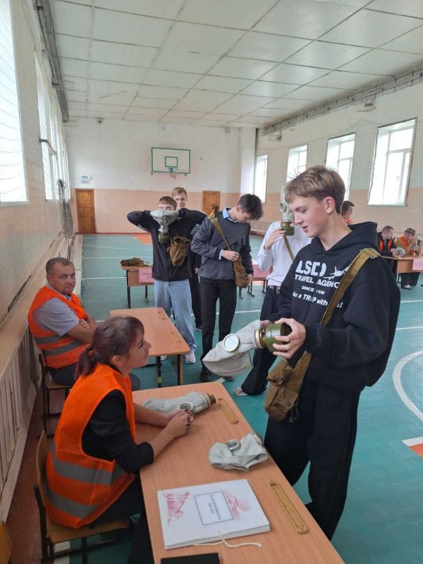 Одним из мероприятий тренировки стали практические учения на базе школы. В тренировке участвовали старшеклассники, они получили индивидуальные средства защиты и отработали действия при ЧС.Фото пресс-центра администрации...