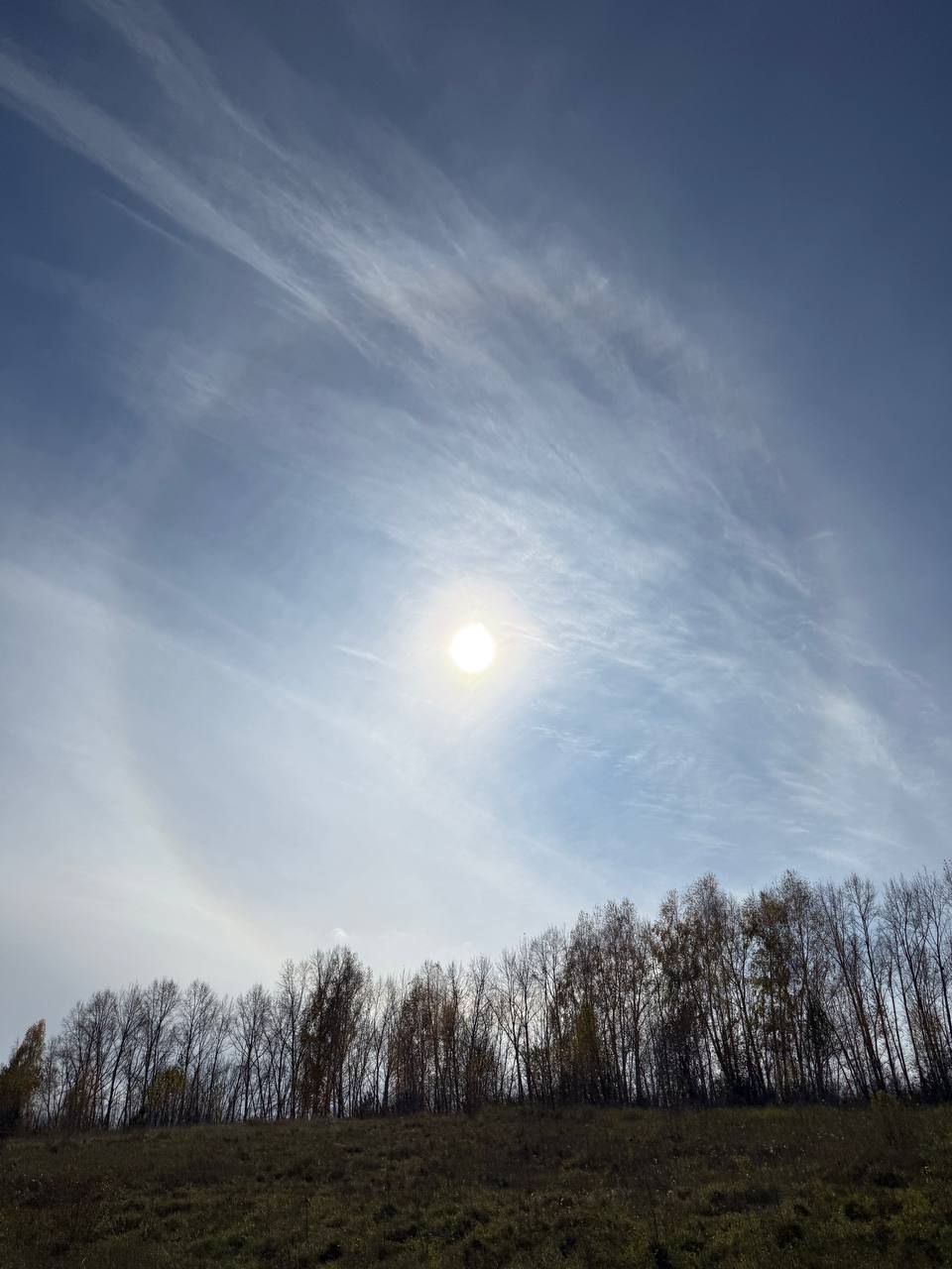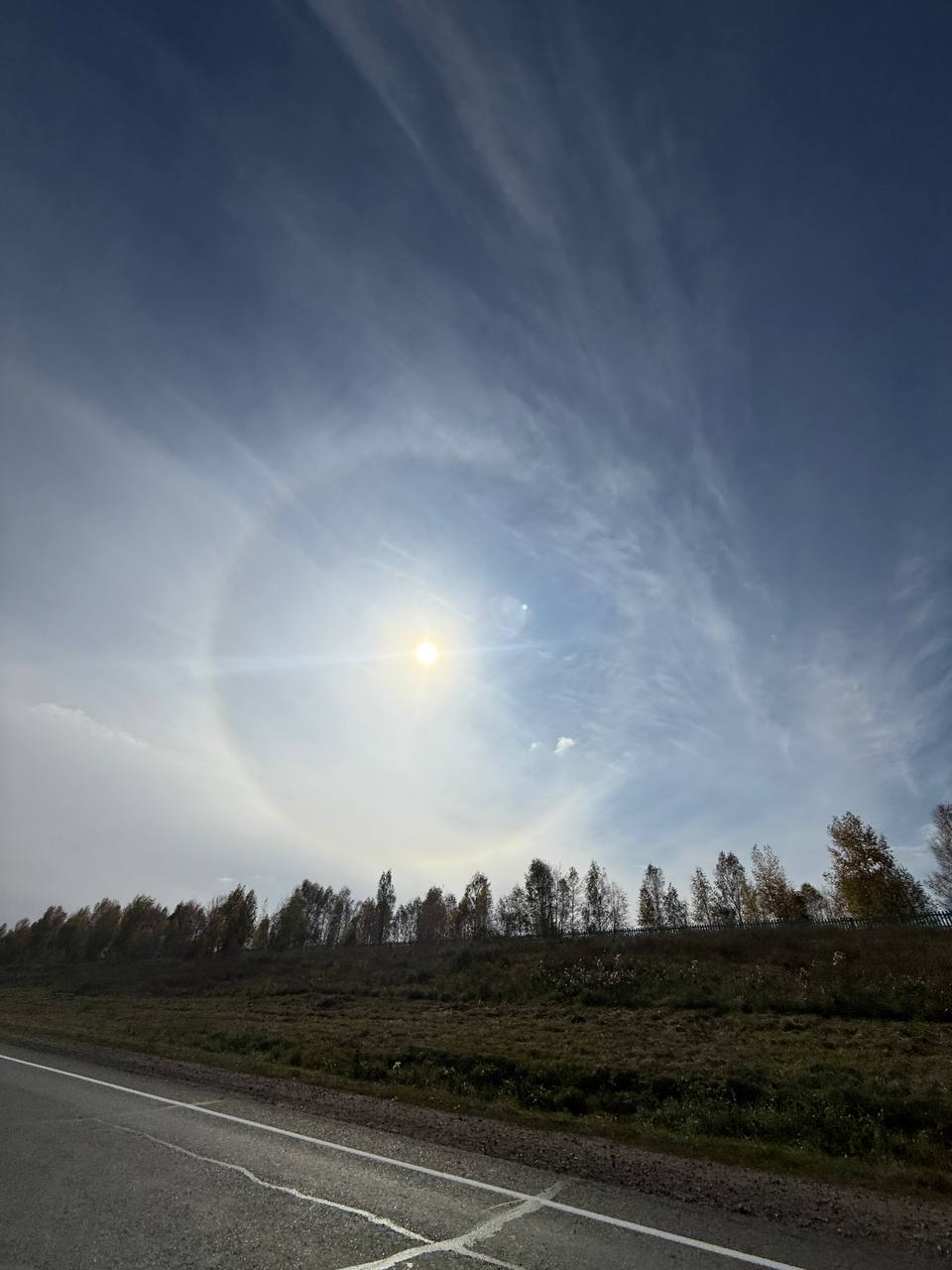 Жители Барнаула наблюдали редкое атмосферное явление — сияющий круг вокруг солнца.