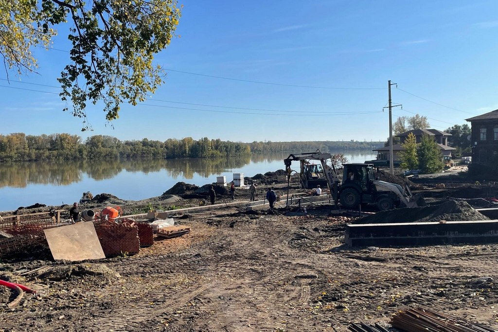 «Сейчас в сквере идет демонтаж, укладка плитки, прокладка коммуникаций и ремонт обелиска. Началось укрепление береговой линии, спланирована дорога. Рабочие подходят к этапу отсыпки и монтажу асфальтового покрытия. Готовы бетонные лавочки вдоль парка. Почти уложена вся тропинка из брусчатки вдоль дороги. Готовится место для сцены. Завершить благоустройство планируется до конца года», - рассказал Григорий Бахтин.