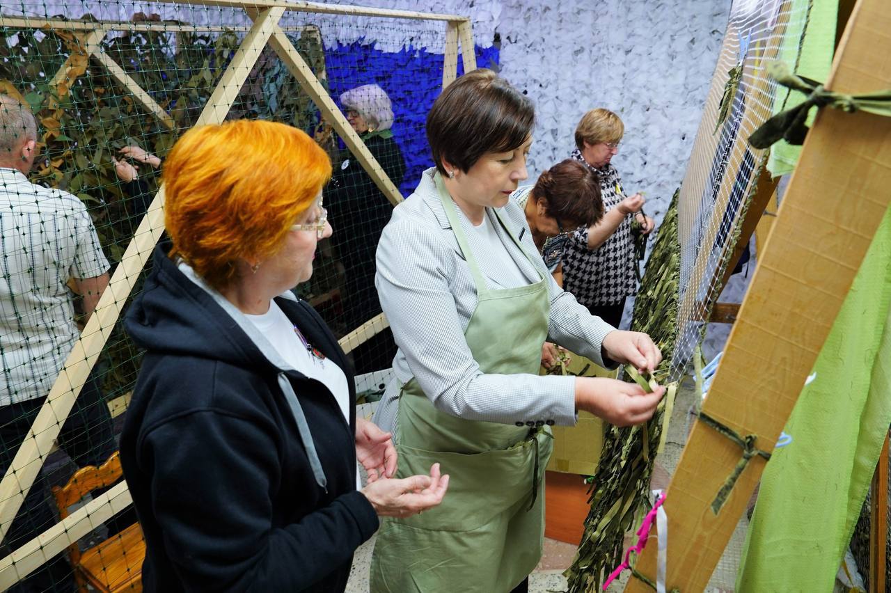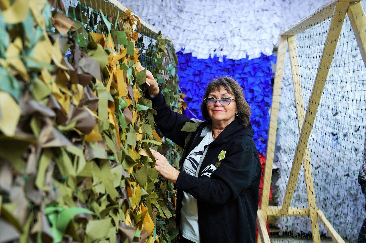 Галина Буевич присоединилась к волонтерам и вместе с ними связала маскировочную сеть.