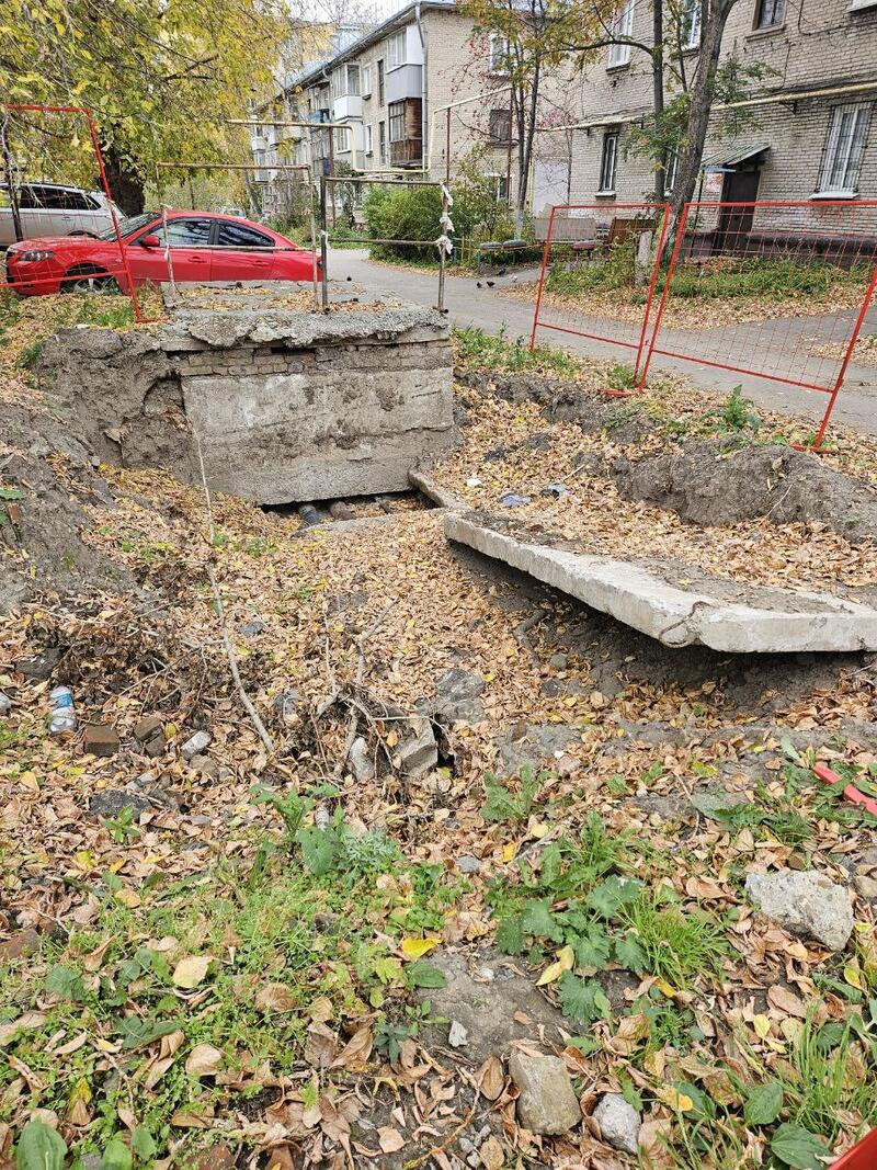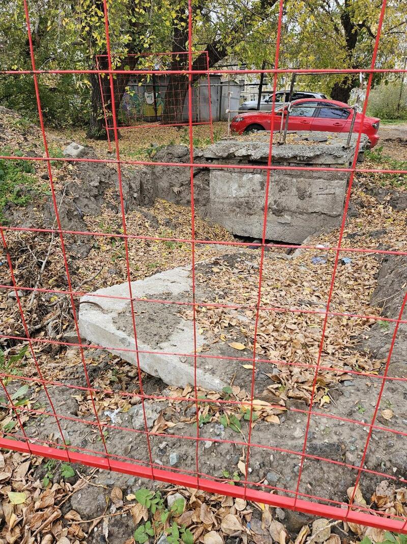 Также жильцы обращают внимание на яму, которую во дворе дома разрыли месяц назад и огородили. Они рассказали, что работы на этом месте до сих пор никто не начал.