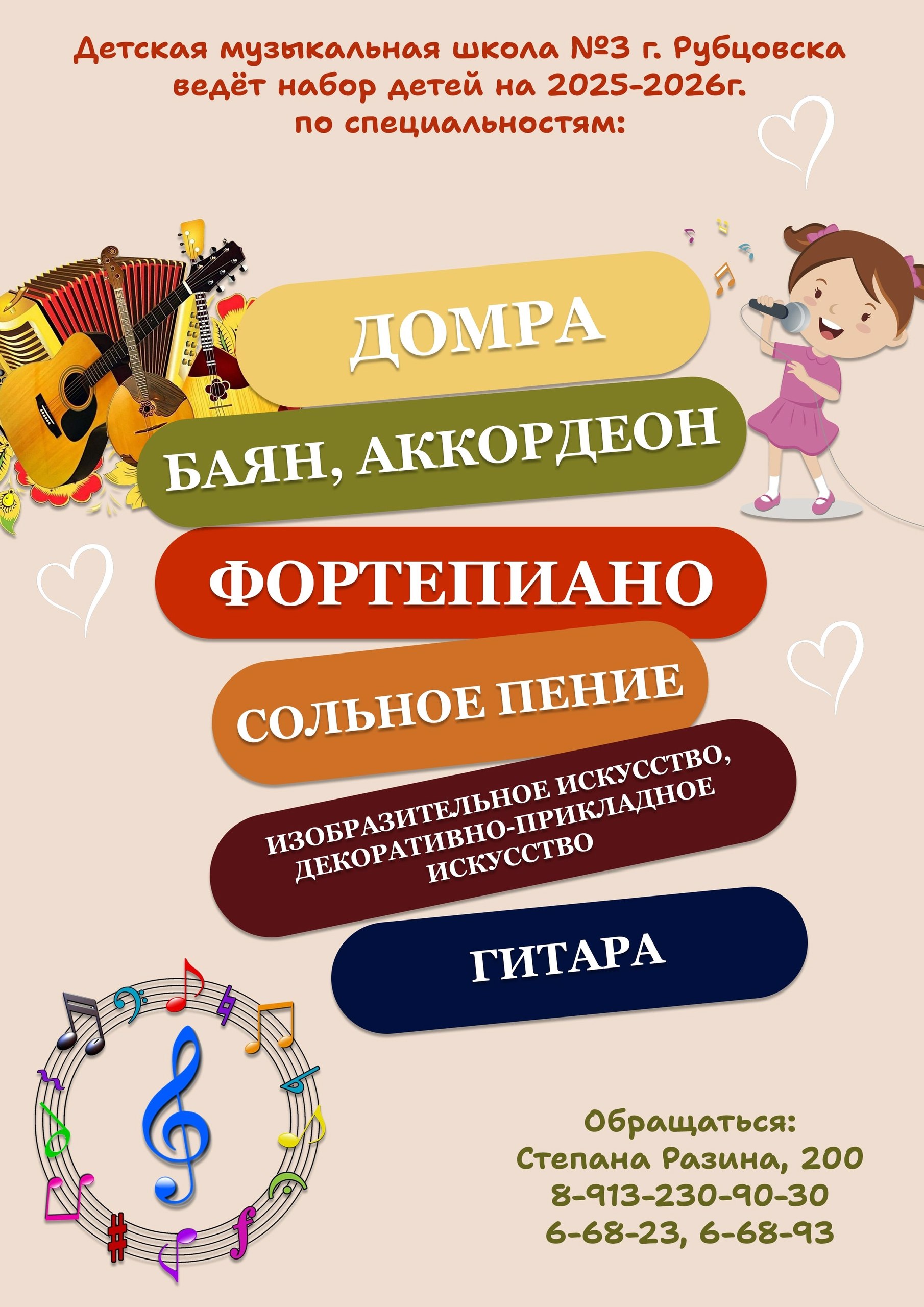 Детская музыкальная школа № 3 ведёт набор учащихся на 2025-2026 учебный год по следующим направлениям: