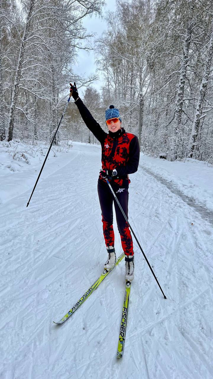 Фотографиями своей лыжной прогулки по Новосибирскому биатлонному комплексу она поделилась в соцсетях.
