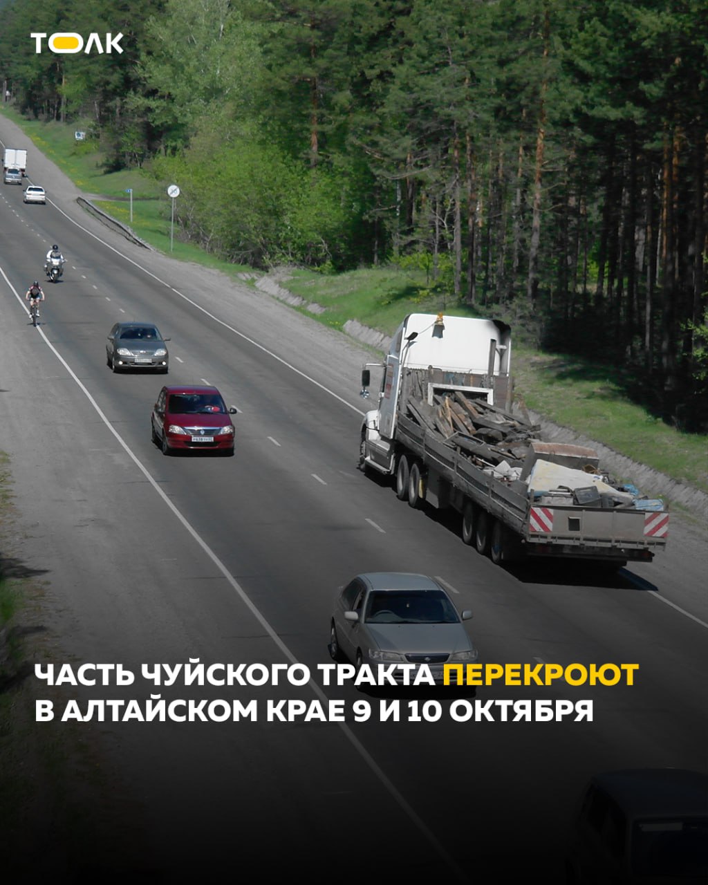 9 и 10 октября временно перекроют движение для всех видов транспорта на Чуйском тракте, сообщили в региональном Минтрансе.