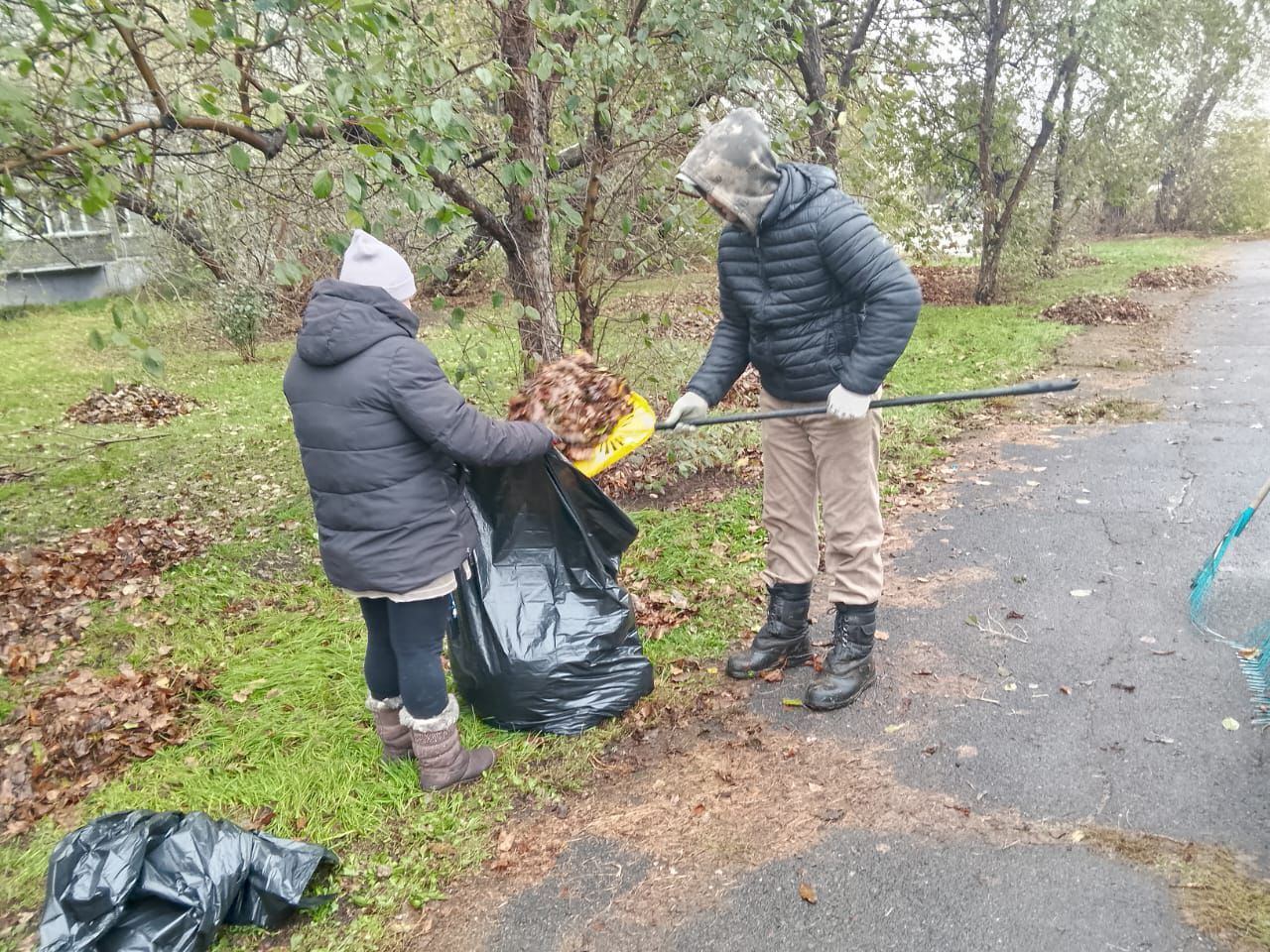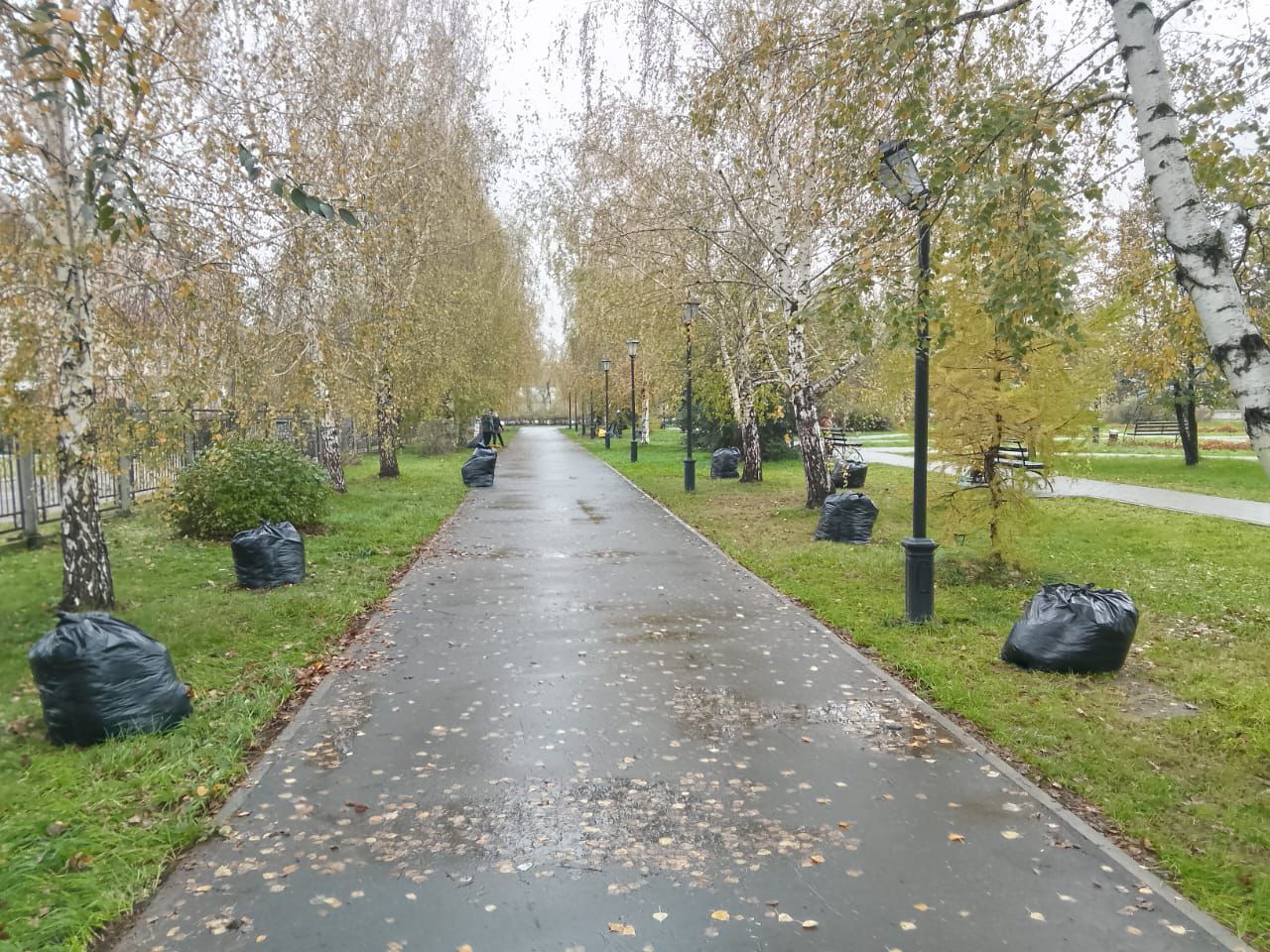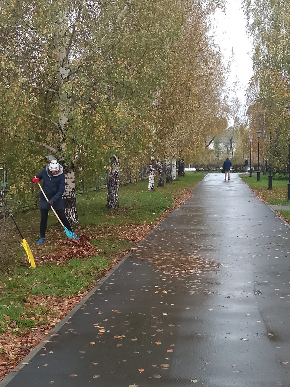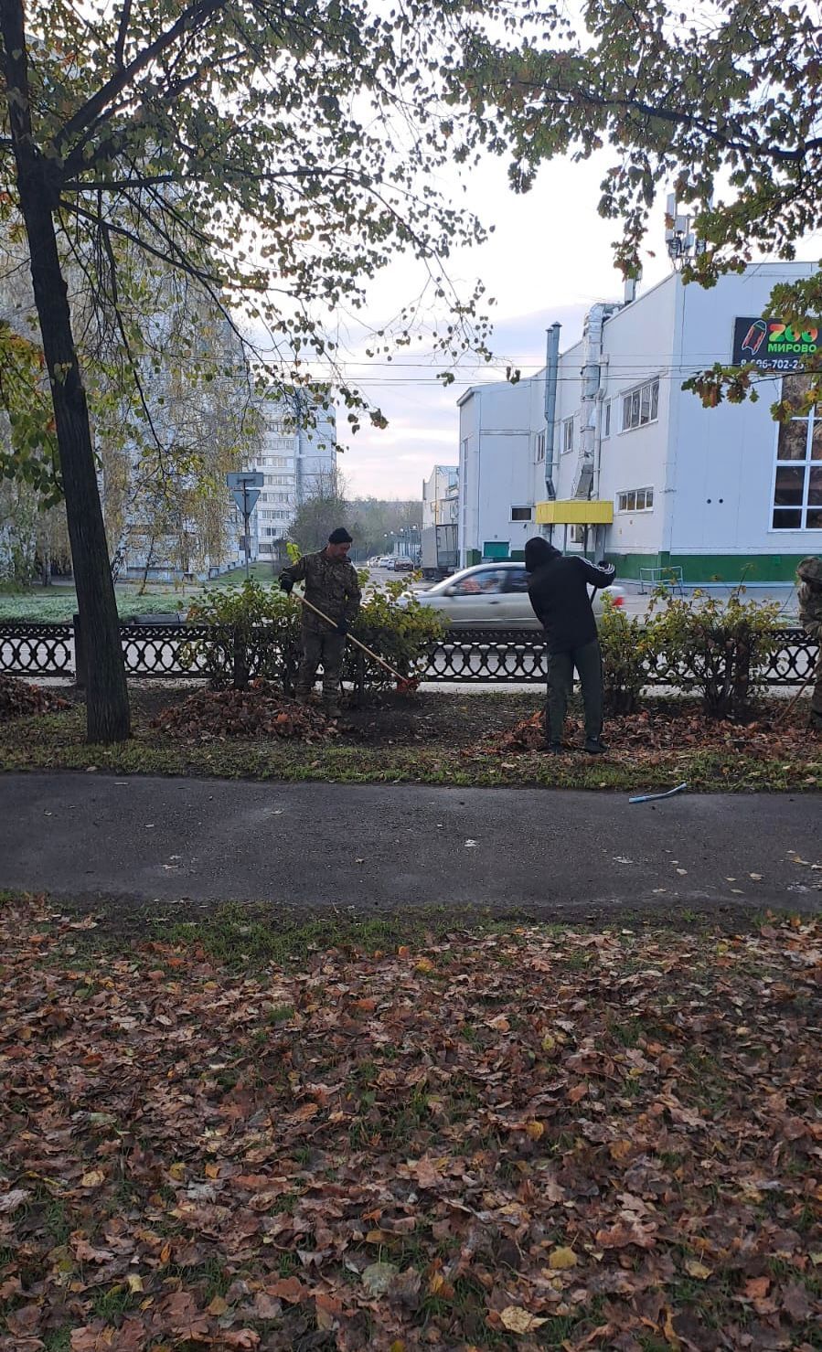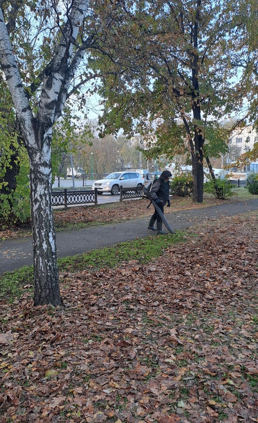 На этой неделе благоустраивают городские зеленые зоны и общественные территории: убирают опавшую листву и очищают газоны от мусора.