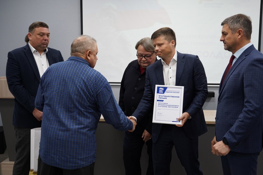 Церемония вручения прошла в штабе общественной поддержки. В ней принял участие депутат Алтайского краевого Законодательного Собрания Александр Лисицын и депутат Барнаульской городской Думы, руководитель регионального отделения общественного движения «Отцы России» Сергей Струченко.