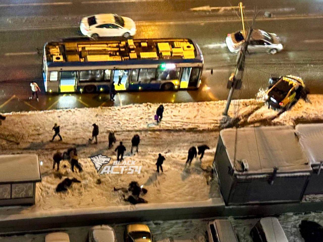Автомобиль въехал в остановку в Новосибирске