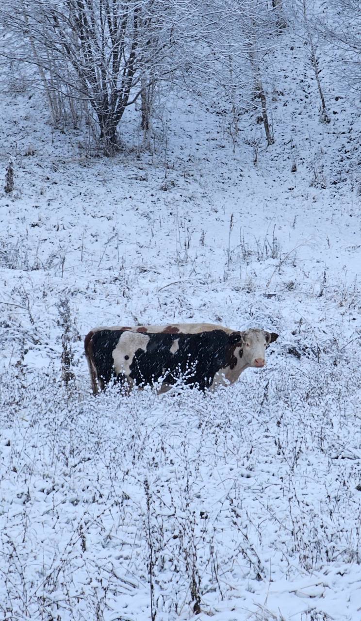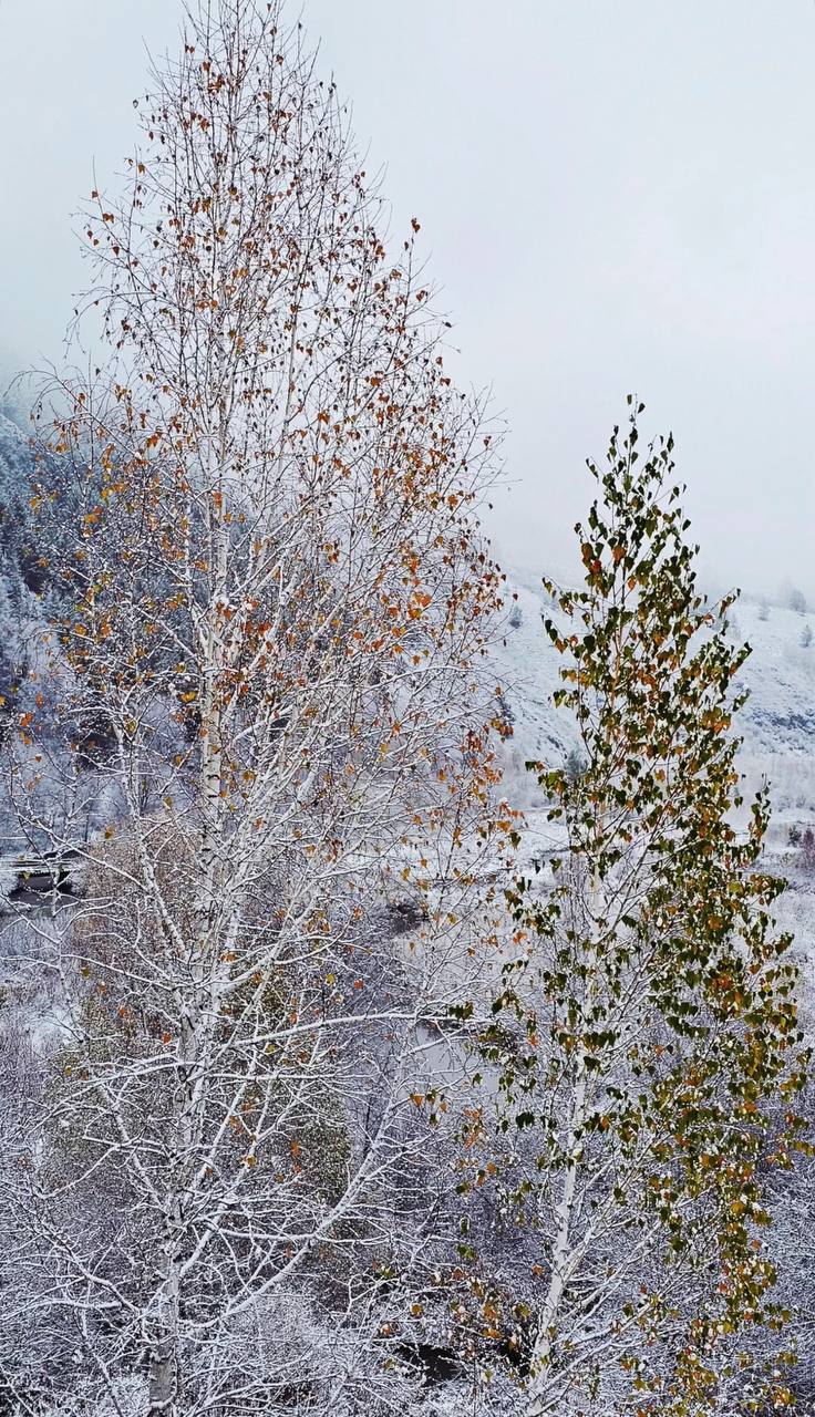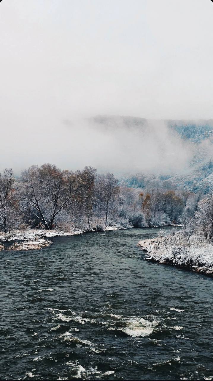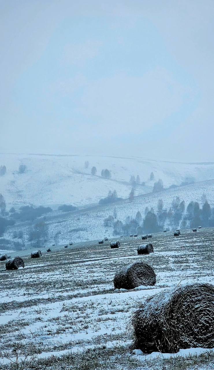 На фото — горы, реки, дома, коровы, поля и велосипед, присыпанные октябрьским снегом в Солонешенский районе.