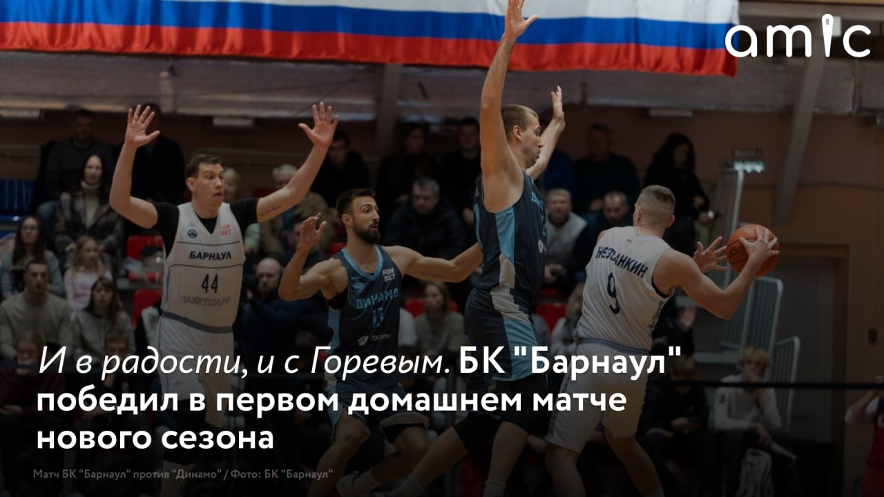 В понедельник, 13 октября, в СК "Победа" прошел первый домашний матч БК "Барнаул" в рамках FONBET чемпионата России в регулярном сезоне Суперлиги. Алтайский коллектив под управлением Александра Герасимова встретился с командой "Динамо" из Уфы – одним из самых принципиальных соперников по Суперлиге. Клуб возглавляет легенда алтайского баскетбола – тренер Евгений Горев. Как и ожидалось, матч вышел огненным.