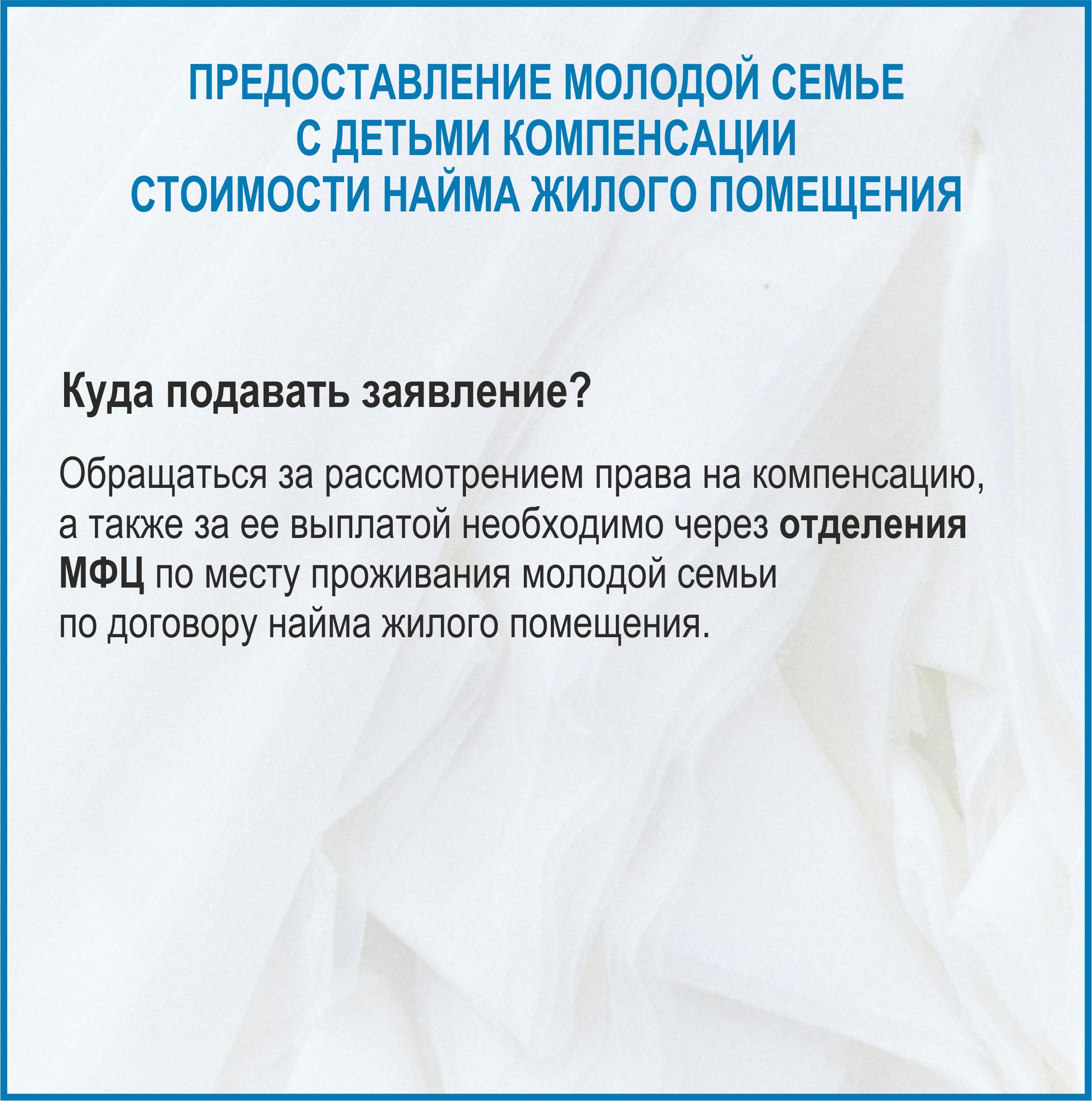 Предоставление молодой семье с детьми компенсации стоимости найма жилого помещения