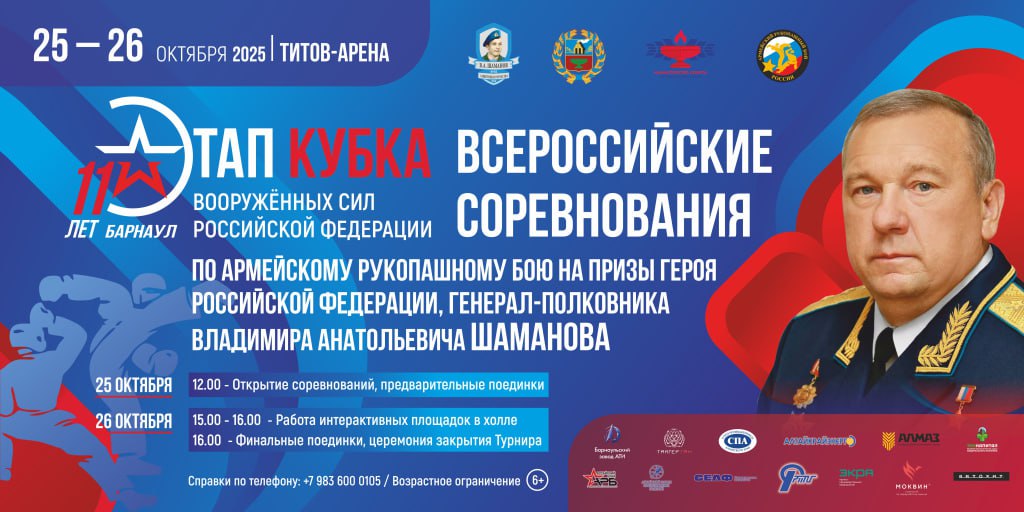 25-26 октября в Титов Арене состоится Этап Кубка Вооруженных сил России по армейскому рукопашному бою на призы Героя России Владимира Шаманова. Это один из самых значимых турниров по данному виду спорта в стране и главный в Алтайском крае