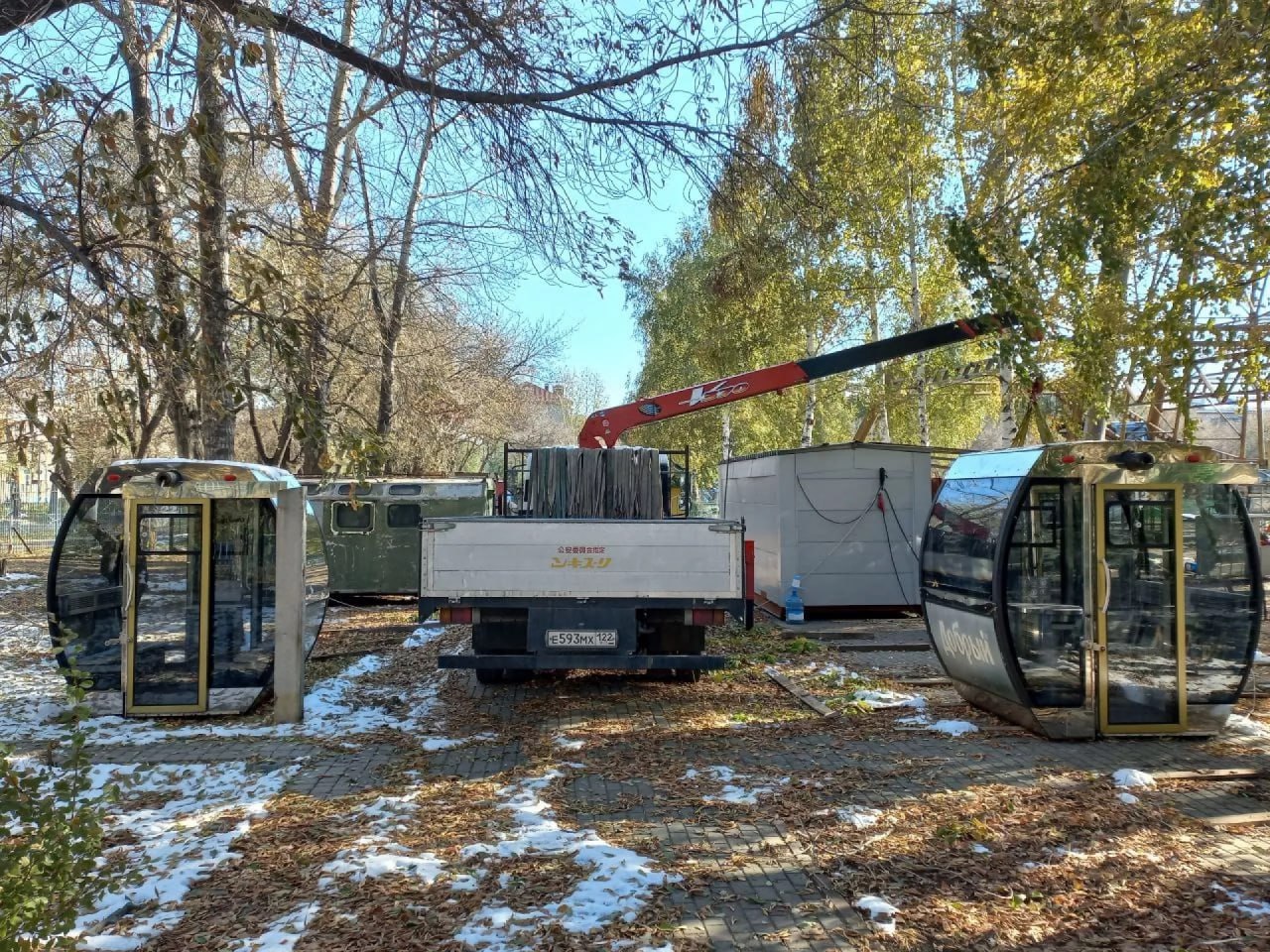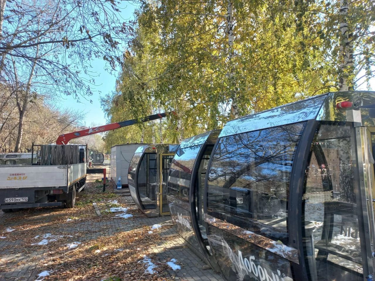 На момент, когда мы делали фото их было уже двенадцать. Напомним, что по планам подрядчика аттракцион должен начать работу до конца 2025 года.
