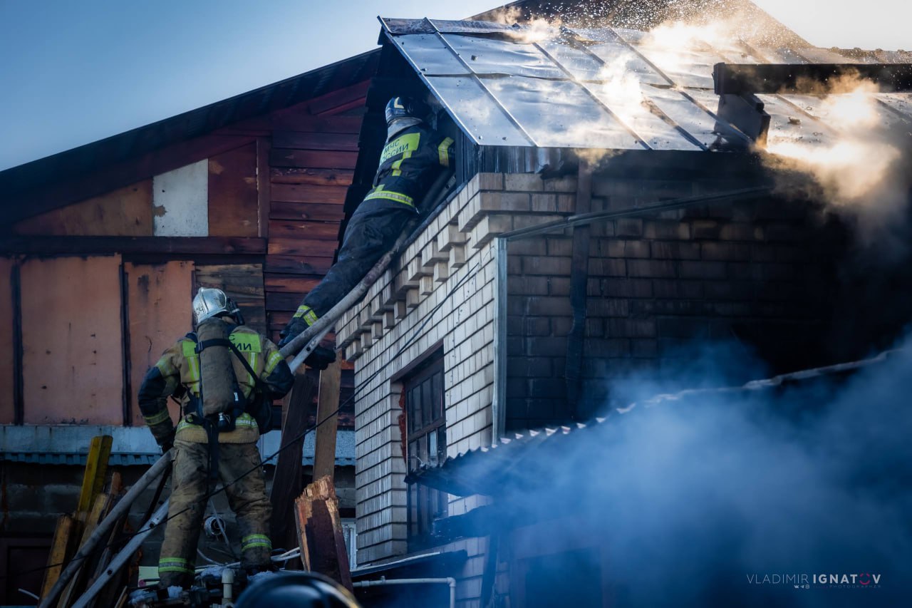 Пожар произошёл сегодня в частном секторе на улице Георгия Исакова. Огонь охватил крышу жилого дома и мог в любой момент перейти на соседние строения.