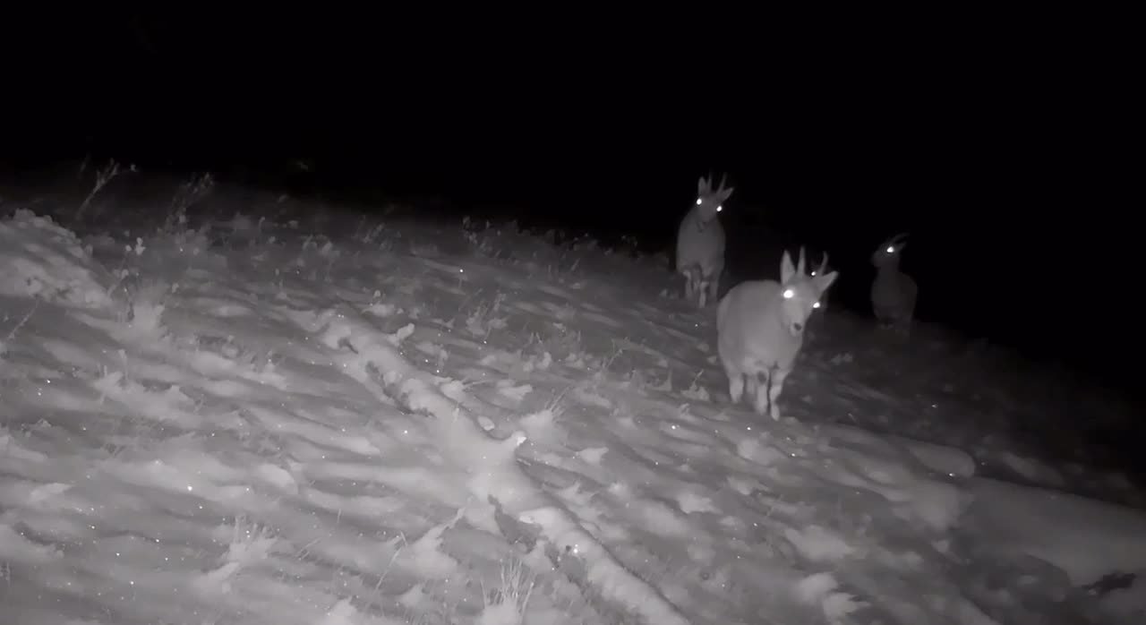 Доброго утра желают вам козероги из Сайлюгемского нацпарка. Их глаза светятся из-за отражающего слоя под сетчаткой: тапетума. Он помогает животным лучше видеть в темноте. А вообще козлики очень милые, если их не обижать.