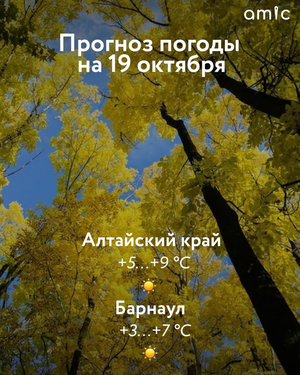 От +5 до +9 градусов ожидается в Алтайском крае 19 октября. Такой прогноз сделали синоптики регионального Гидрометцентра.