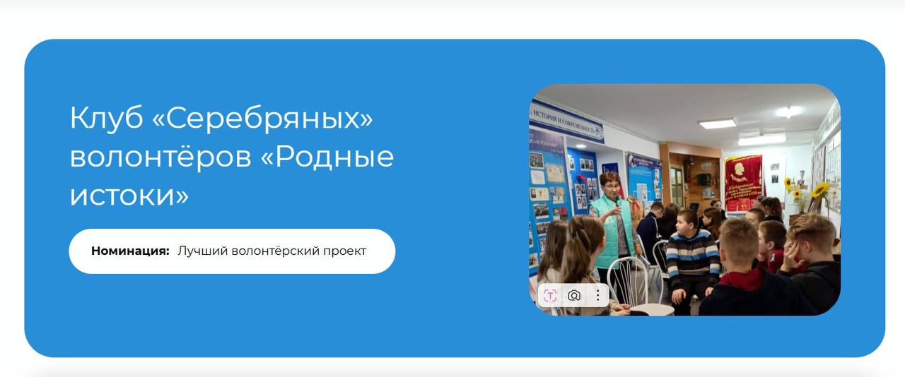 Проект волонтерского клуба «Родные истоки» из села Табуны, возглавляемого «серебряным» волонтеров Галиной Владимировной Чайка вошел в сборник лучших практик премии «Волонтеры истории», сообщили в Министерстве социальной защиты Алтайского края.