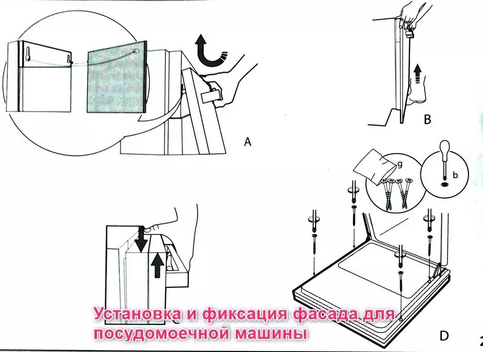 - Фасадная панель: Убедитесь, что ширина и высота фасада совпадают с размерами вашей модели посудомоечной машины.