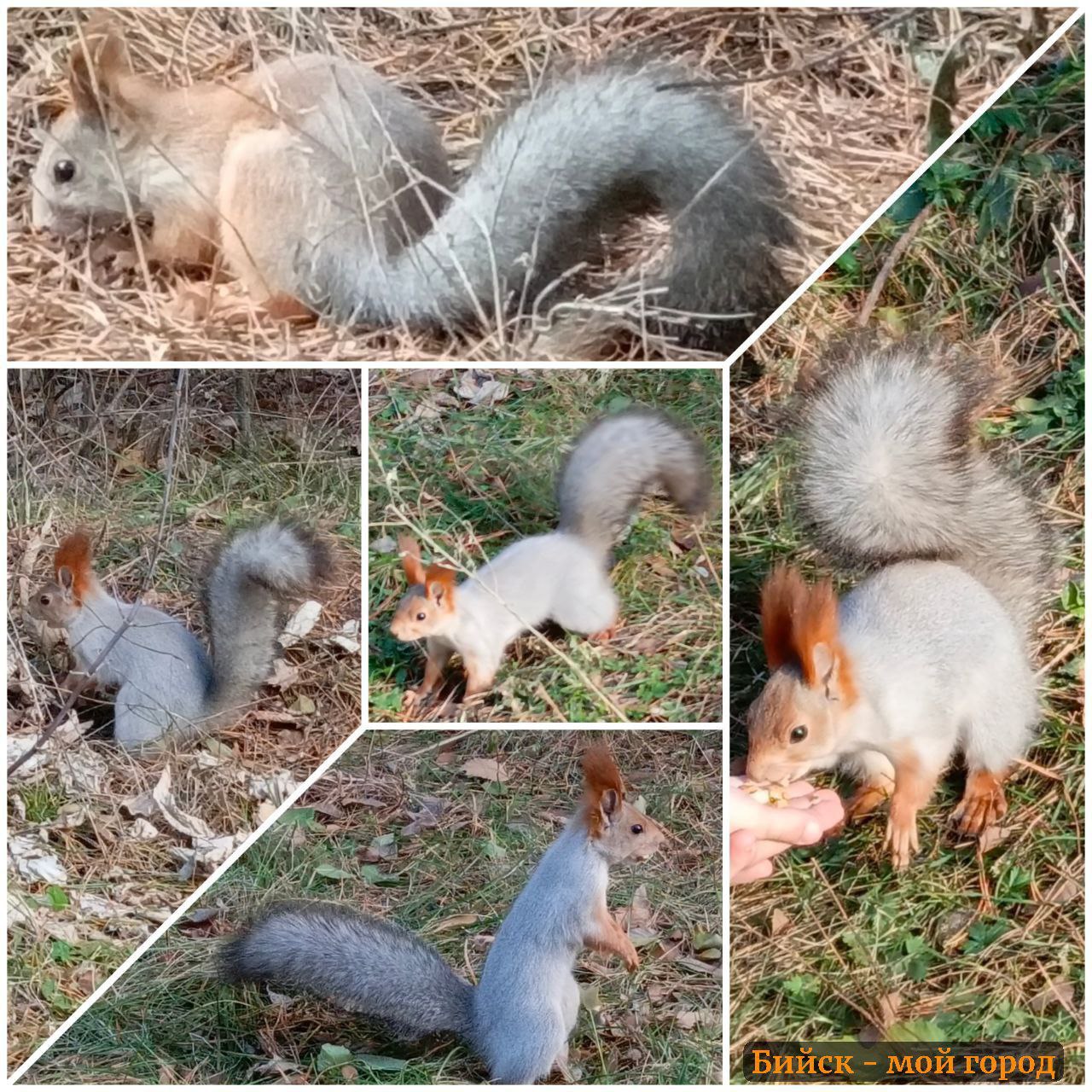 А ещё каждая белочка сейчас меняет цвет по-разному. У кого только мордочка рыжая осталась, а у некоторых только хвост к зиме готов. Хорошего настроения
