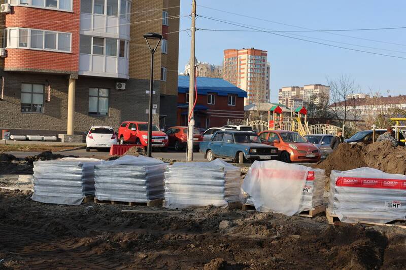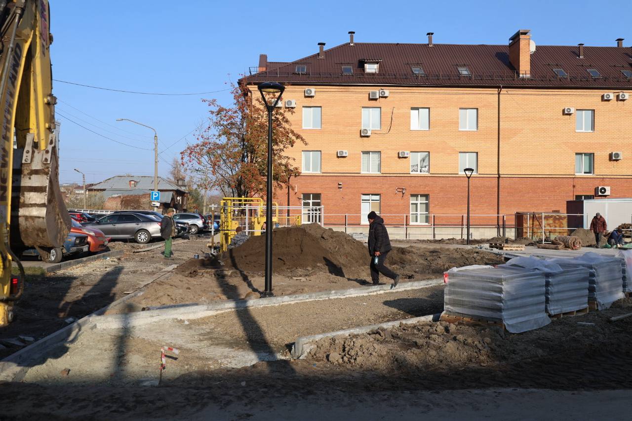 Благоустройство новой территории стартовало в начале сентября. За это время подрядная организация выполнила значительный объем подготовительных работ. Сейчас специалисты приступили к укладке тротуарной плитки и установке освещения.