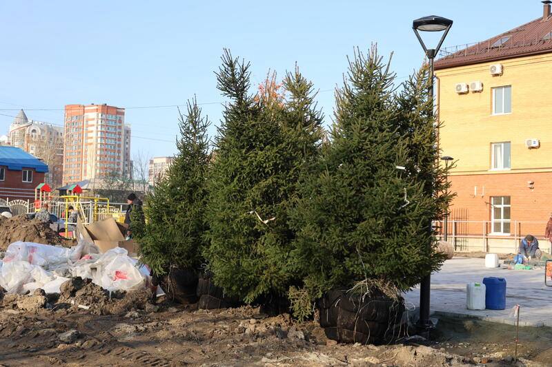 Плитка и елки. Как в Барнауле благоустраивают новый сквер