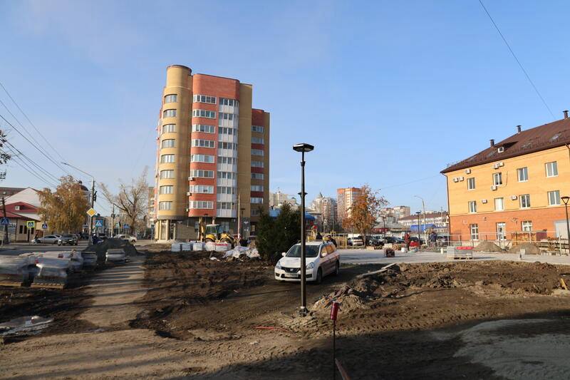В Барнауле продолжается благоустройство нового сквера на пересечении улиц Максима Горького и Пушкина. Ранее на этом месте располагался аварийный дом, который был снесен, чтобы освободить территорию для создания современного общественного пространства.