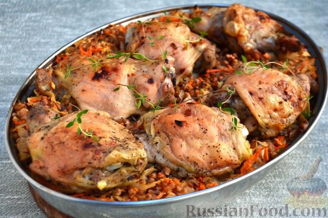 - Гречка с курицей и квашеной капустой. Это блюдо идеально подходит для тех, кто хочет порадовать себя запеченной курицей с гарниром. Каша из гречки, дополненная квашеной капустой, имеет уникальный вкус и станет отличным вариантом для холодного вечера.