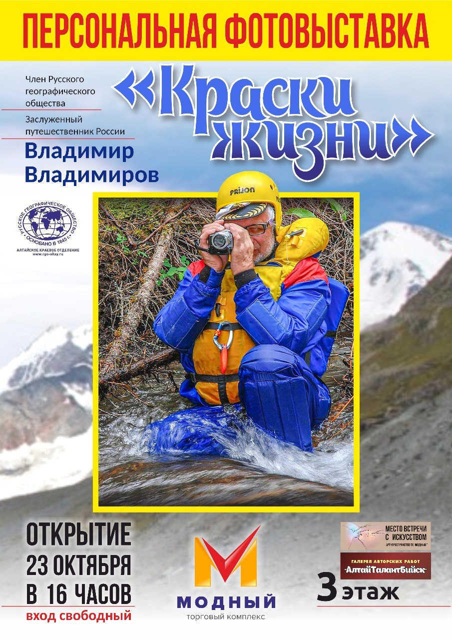 Галерея авторских работ «АлтайТалантБийск», арт-пространство «Место встречи с искусством» и Бийское отделение Русского географического общества приглашают жителей и гостей города на торжественное открытие фотовыставки «Краски жизни».