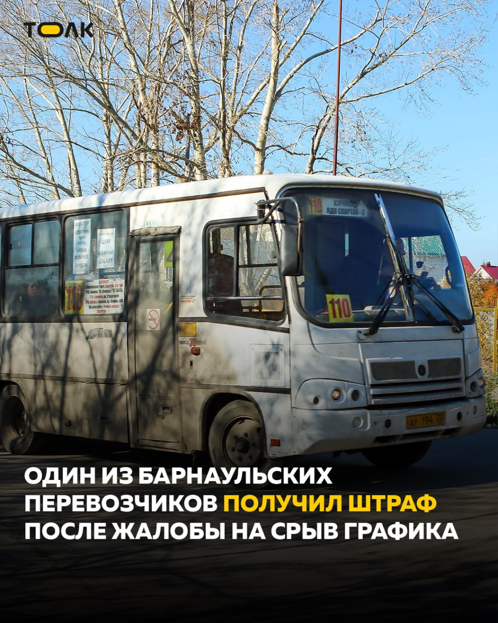 Перевозчик, который обслуживает автобусный маршрут № 110 в Барнауле, получил штраф за несоблюдение расписания.