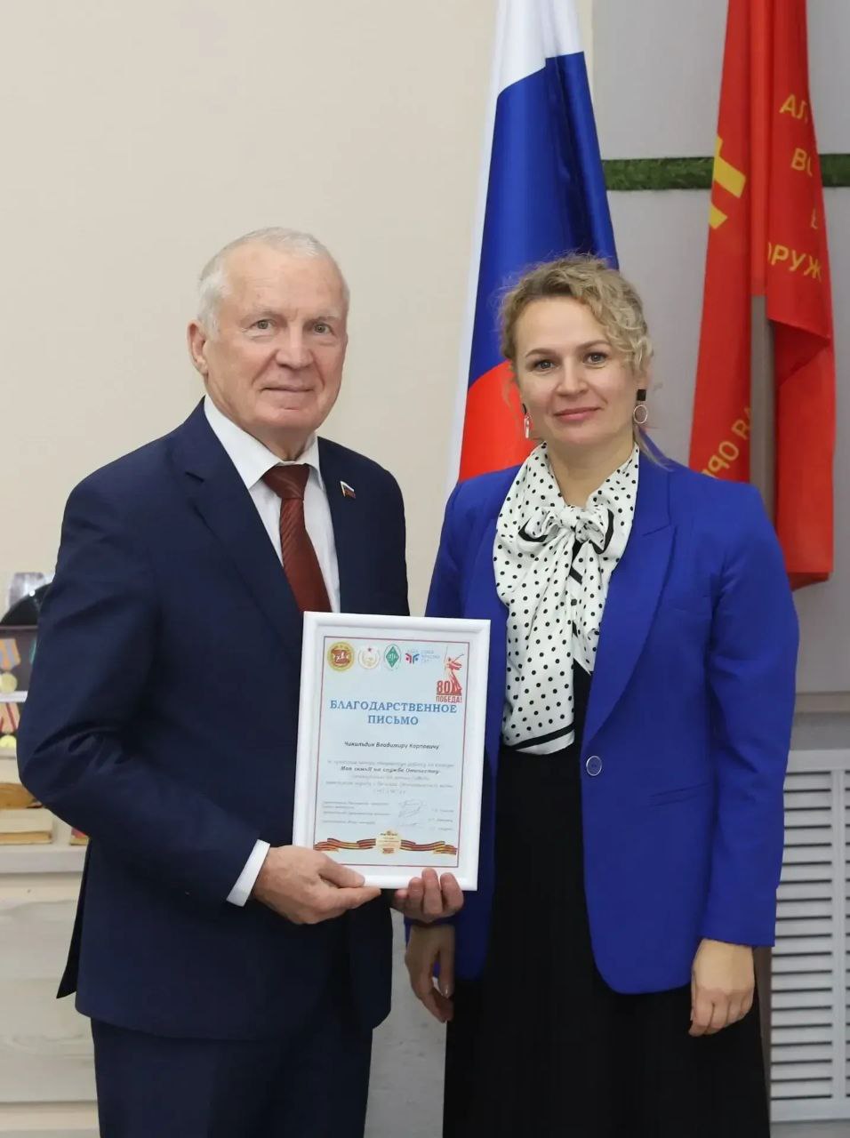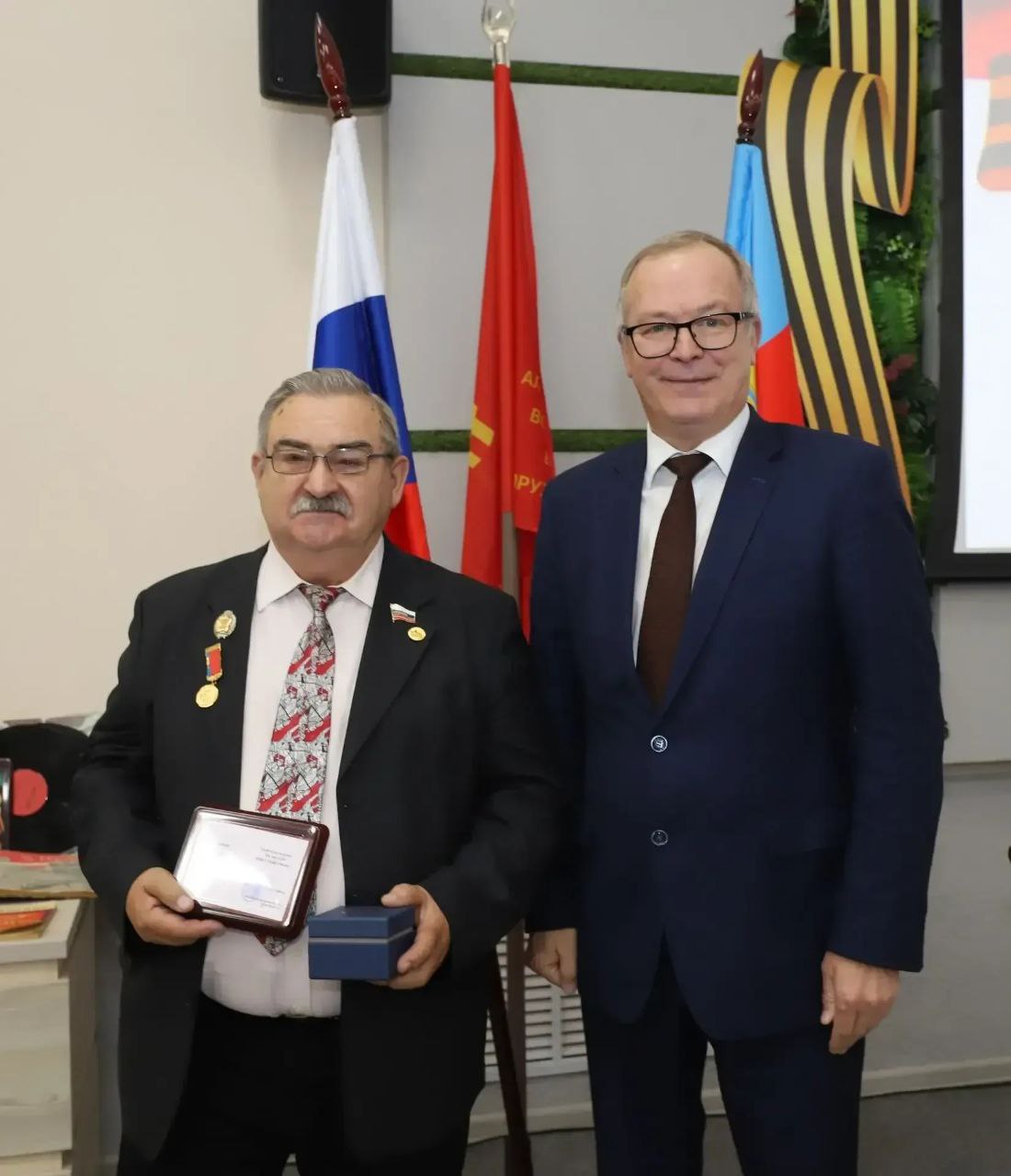 Игорь Степаненко вручил краевые награды ветеранам за активную общественную деятельность. Председатель Барнаульской окружной общественной организации ветеранов Валентин Тимофеевич Бороздин удостоен медали «За заслуги во имя созидания», а заместитель председателя Барнаульской городской общественной организации ветеранов Александр Михайлович Кравцов - медали «За заслуги перед обществом».