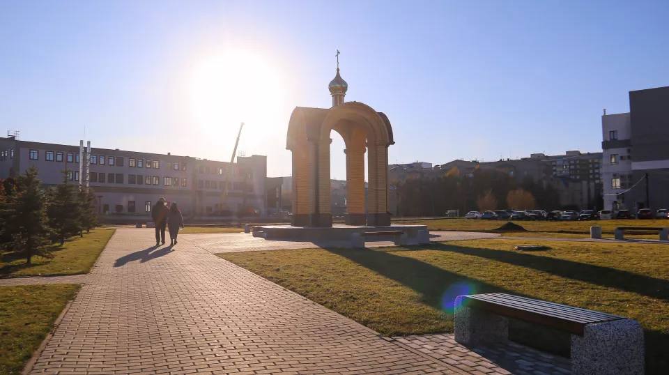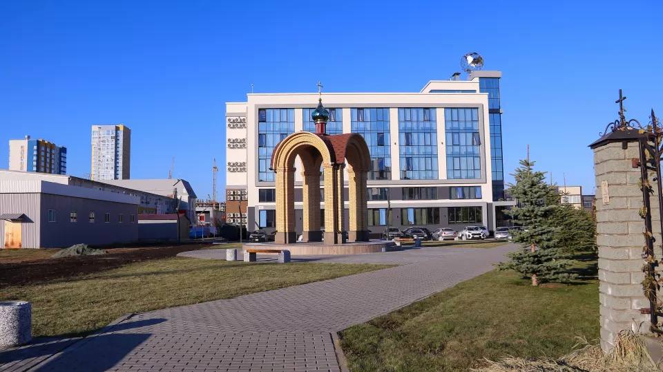 Сооружение в форме шатра с колоннами и ярким куполом — один из первых подобных объектов в Барнауле. Его возвели рядом с Иоанно-Богословским храмовым комплексом (ул. Шумакова, 25а). Неделю назад митрополит Барнаульский и Алтайский Сергий освятил купол с крестом, а часовню посвятили Иоанну Крестителю. Территорию вокруг неё благоустроили.