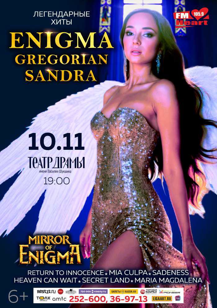 В Алтайском краевом театре драмы им. В.М. Шукшина 10 ноября 2025 года состоится премьера новой программы шоу Mirror of Enigma, на которой исполнят легендарные хиты музыкальных коллективов Enigma и Gregorian и певицы Sandra.