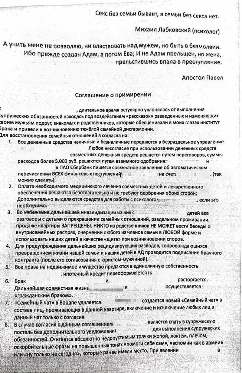 В ЯНАО муж очень не хотел разводиться с женой и решил попробовать помириться. Для этого он принес ей список требований, распечатанный и написанный лично. Некоторые из них выглядели как настоящая насмешка, утверждает женщина.