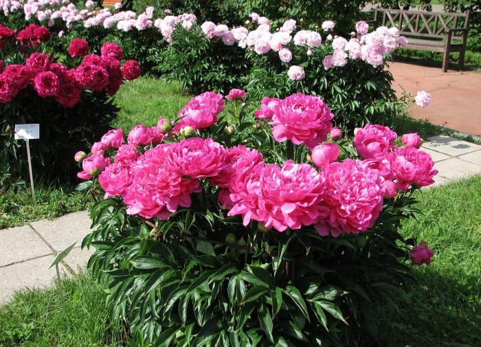 - Розы: Эти цветы начинают расцветать после пионов, в конце июня - начале июля. Миниатюрные розы прекрасно подойдут для переднего плана, создавая фон для пионов, тогда как парковые сорта можно высаживать позади, чтобы продолжить цветение после их ухода в отцвет.