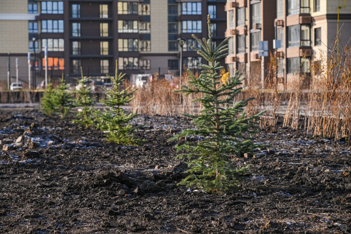На территории у ТЦ «Европа» ООО «Ной» уложило дорожки и покрытие для площадок, завершило монтаж освещения. Высажено 190 деревьев, завершен посев газона и посадка более 2 тысяч кустарников.