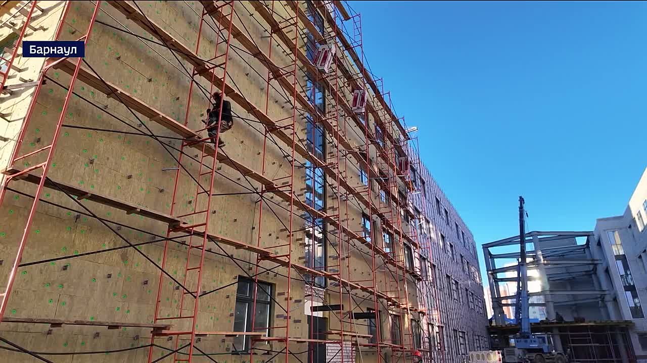 Самая большая школа в Барнауле, рассчитанная на 1 100 учащихся, возводится в густонаселённом Индустриальном районе. По проекту это будет четырёхэтажное здание общей площадью свыше 18 тысяч кв.м. На данный момент подрядчик забетонировал чашу бассейна, сейчас идёт оштукатуривание стен, монтаж плит перекрытия, оконных блоков, воздуховодов вентиляции и кабельных линий электроосвещения, а также других инженерных коммуникаций.
