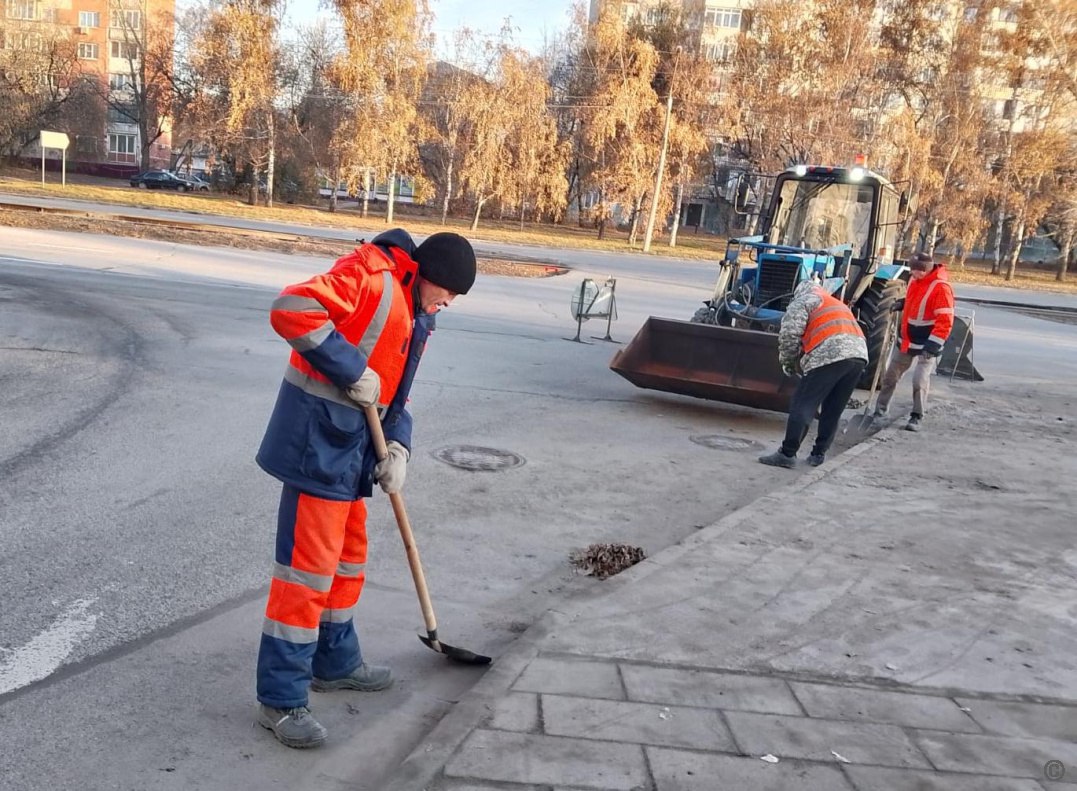 В «чистый четверг», 30 октября, дорожные рабочие очищают улично-дорожную сеть от листвы и мусора, продолжают зачистку придорожных лотков вручную и механизированным способом.