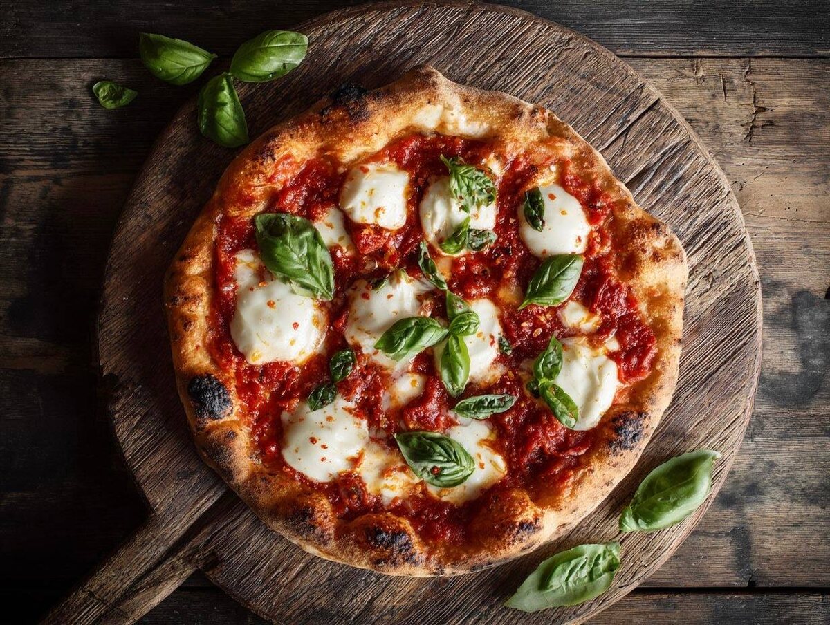 4. Финальный штрих: Добавьте свежий базилик и каплю оливкового масла перед подачей. Пицца готова к наслаждению!