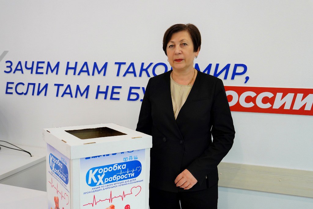 В рамках всероссийской акции «Коробка храбрости», организованной партией «Единая Россия», председатель Барнаульской городской Думы Галина Буевич передала подарки детям, находящимся на длительном лечении в медицинских учреждениях краевой столицы.