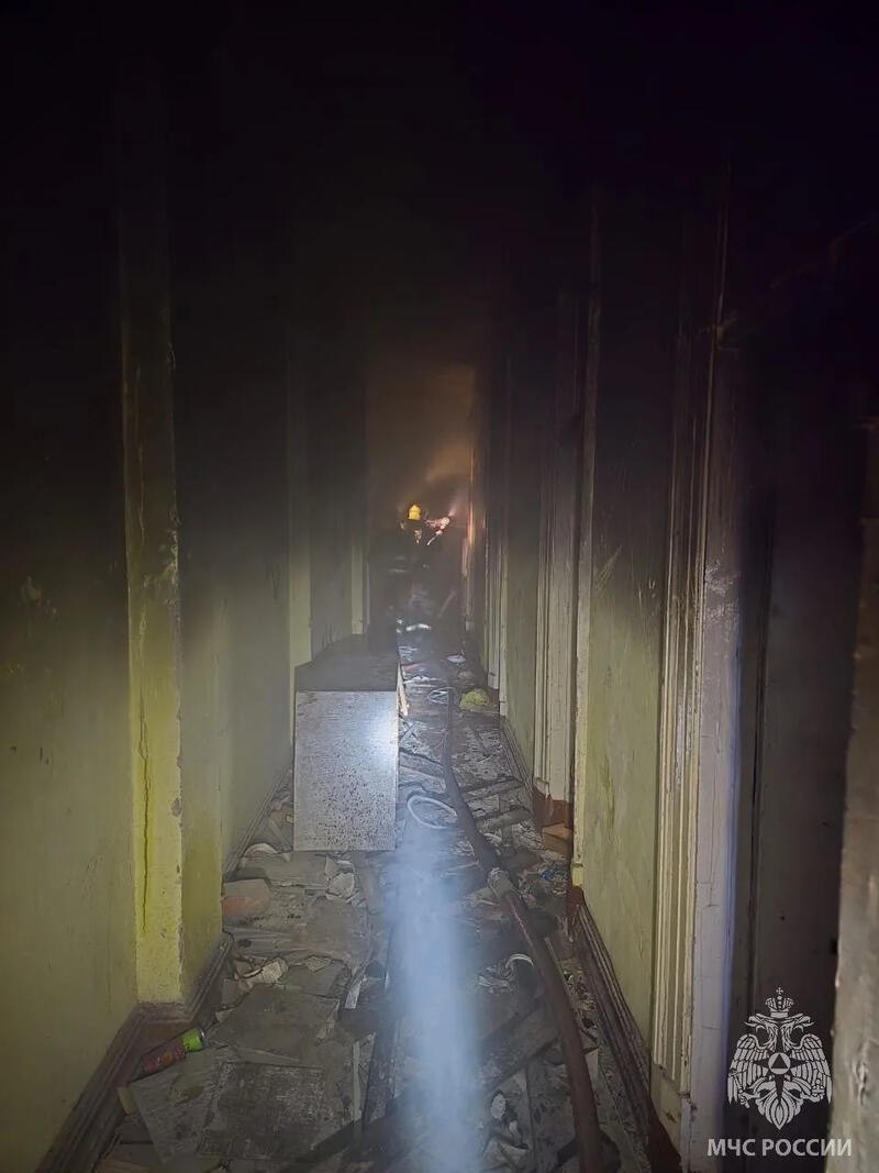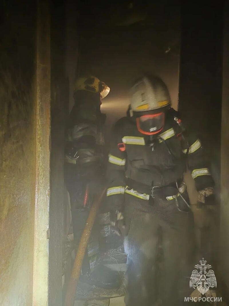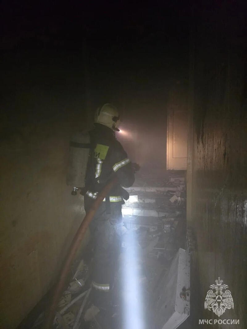"Пожар ликвидирован на площади около 20 "квадратов". Из здания газодымозащитниками выведен мужчина, госпитализирован с отравлением продуктами горения. Предварительная причина случившегося – неосторожность при курении", – рассказали в ведомстве.