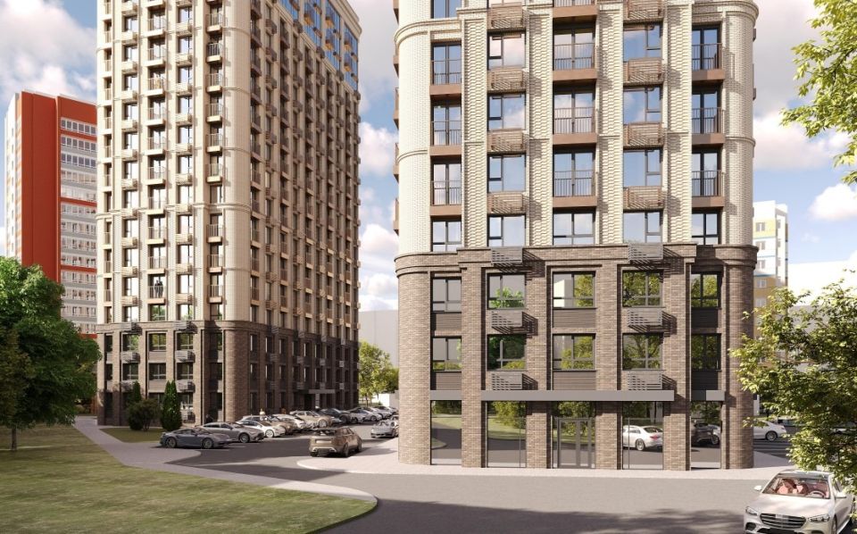 "Отличительная особенность зданий в том, что они полностью кирпичные. Это позволило выполнить интересную пластику фасада. Также он полностью облицован керамическим кирпичом двух оттенков. Его дополняет композитный материал под окнами, металлические ограждения балконов и корзины для кондиционеров в оттенке бронза. Переплеты окон выполнят в цвете графит – такое вот контрастное цветовое решение. Верхние этажи станут акцентом окружающей застройки днем и вечером", – отметил автор проекта Владимир Золотов.