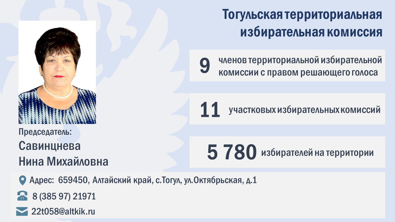 Поздравляем с назначением коллектив Тогульской ТИК и желаем успешной и плодотворной работы на благо развития избирательной системы и жителей района!